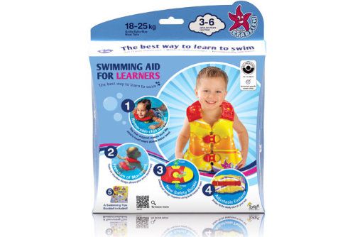 Starfish® ist die einzige Schwimmhilfe für optimale Bewegungsfreiheit, die es Ihrem Kind ermöglicht, die Arme beim Schwimmen frei zu bewegen. Die abnehmbare Unterstützung des Kinn sorgt auch bei sehr kleinen Kinder dafür, dass der Kopf sicher über Wasser bleibt. Sicherheitsverschlüsse, vier Luftkammern und ein optimiertes Velcro-Justiersystem gewährleisten maximale Sicherheit und Komfort beim Tragen! Poppige Farben machen Starfish aber auch zu einem echten Hingucker - für die kleinen Stars am Pool! Mit den jedem Produkt beigelegten Schwimmhilfe-Tipps für Starfish® Kids wird das Schwimmenlernen zum Kinderspiel. Die Sport-pädagogische und trotzdem für Eltern und Kinder verständlich gestaltete Broschüre enthält wichtige und vor allem nützliche Tipps wie man Kindern das Schwimmen auf lustige und bildliche Weise beibringen kann.